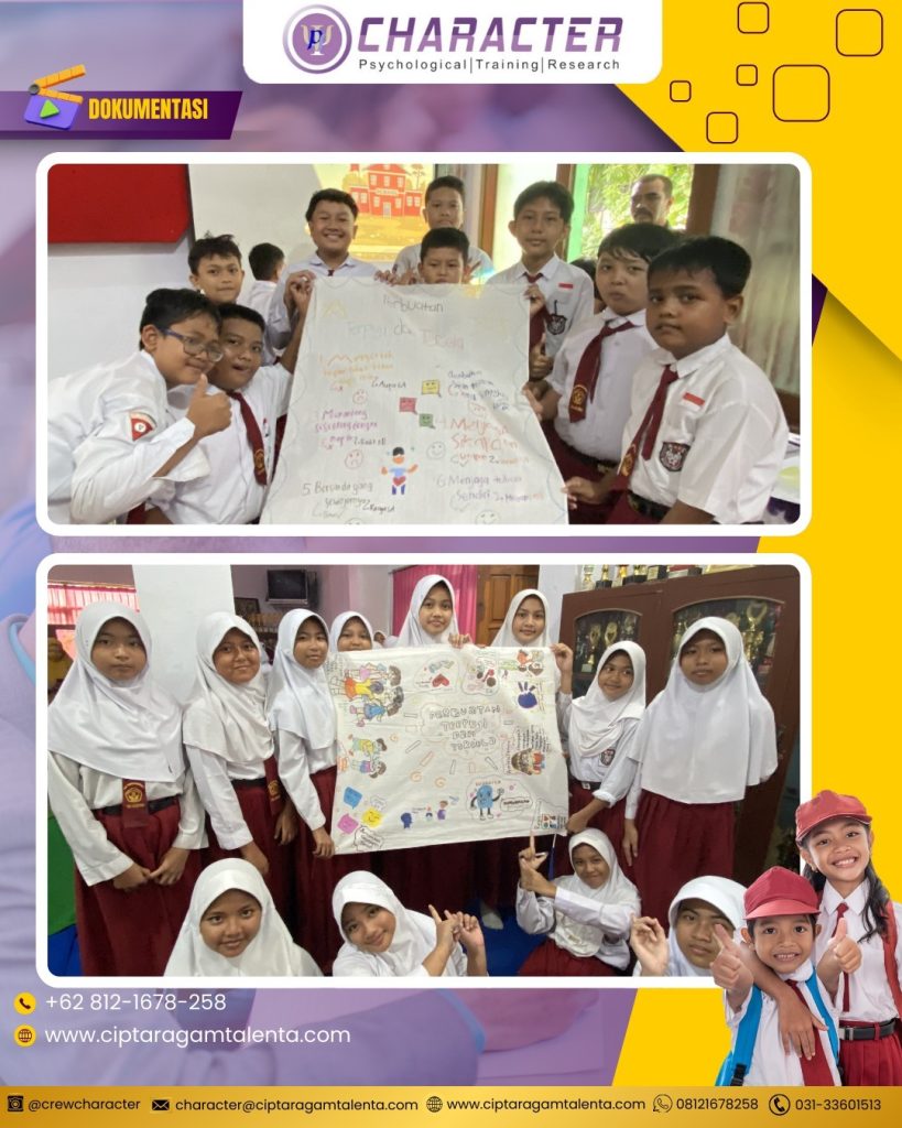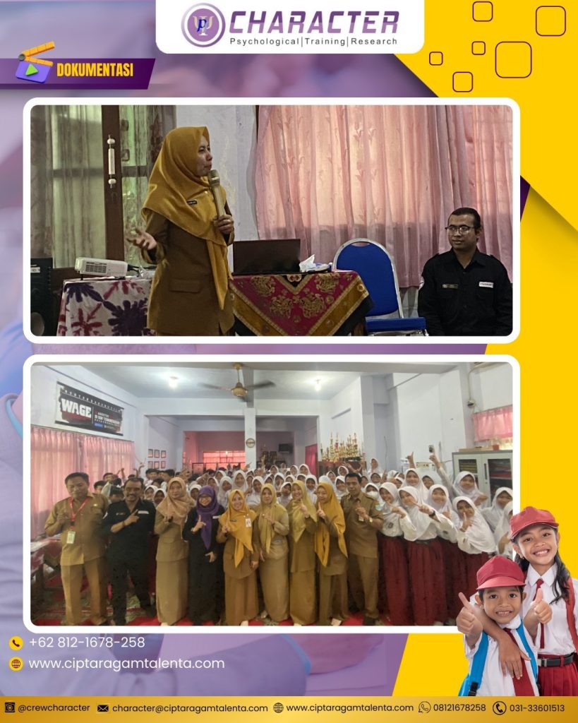 Character Psychological Training & Research berkolaborasi dengan Dinas Pendidikan & Kebudayaan Kota Probolinggo dalam kegiatan penguatan karakter siswa yang bertujuan mendukung terciptanya lingkungan sekolah yang aman, nyaman, dan kondusif. Kegiatan ini dirancang secara interaktif dengan pendekatan edukatif sehingga siswa dapat memahami pentingnya nilai tanggung jawab, empati, saling menghargai, serta peran aktif mereka dalam menjaga budaya sekolah yang positif.